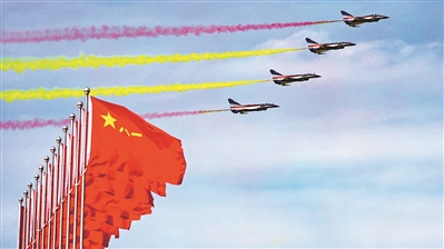 2019年国庆阅兵,22架教练机组成4个编队,拉着彩烟压轴出场。这是空军飞行院校首次联合组成空中梯队参加国庆阅兵。盛世谱华章,天安门上空的一道道彩烟,不只是节日盛典的壮丽景观,也是历史的回响、梦想的宣言。