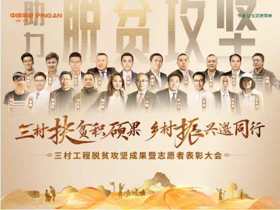 2021年1月6日,中国平安召开脱贫攻坚阶段三村工程暨志愿者表彰大会,隆重表彰了三年以来在“三村工程”中做出突出贡献的单位和个人,同时表彰在2020年度奋斗在社会公益最前线的优秀志愿者分会及个人。