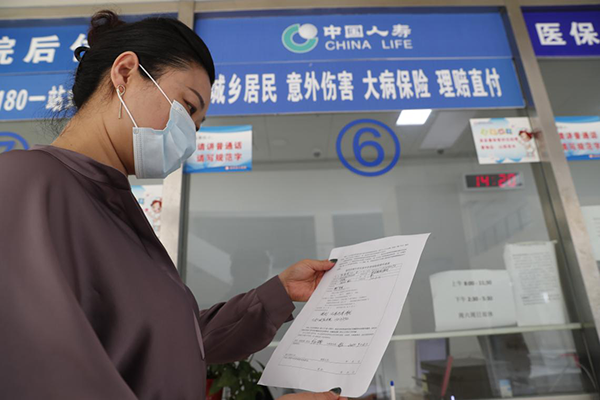 (中国人寿创新开展健康扶贫“一站式”结算服务,让数据多跑路、人员少跑腿。图为设在医院结算窗口的中国人寿健康扶贫大病保险一站式结算理赔直付窗口。)