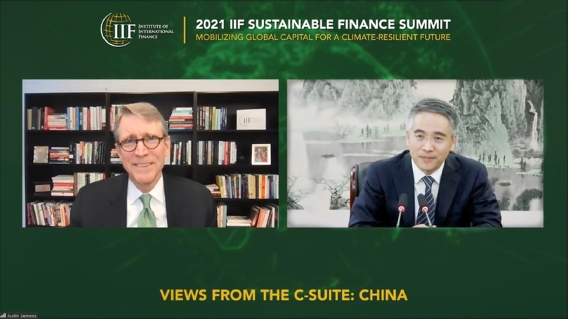 4月21日,中国农业银行董事长谷澍受邀参加国际金融协会(IIF)以视频形式举行的首届可持续金融峰会,并作为中国银行业主要代表在“高管观点:中国”议程中,面向全球参会者接受了IIF总裁安德慕的英文直播访谈。