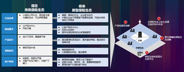 现有产险行业的痛点:重销售、轻产品、轻服务,万物互联之下的未来,是新型保险生态的来临,伴随商业模式、经营模式等方面的变革。