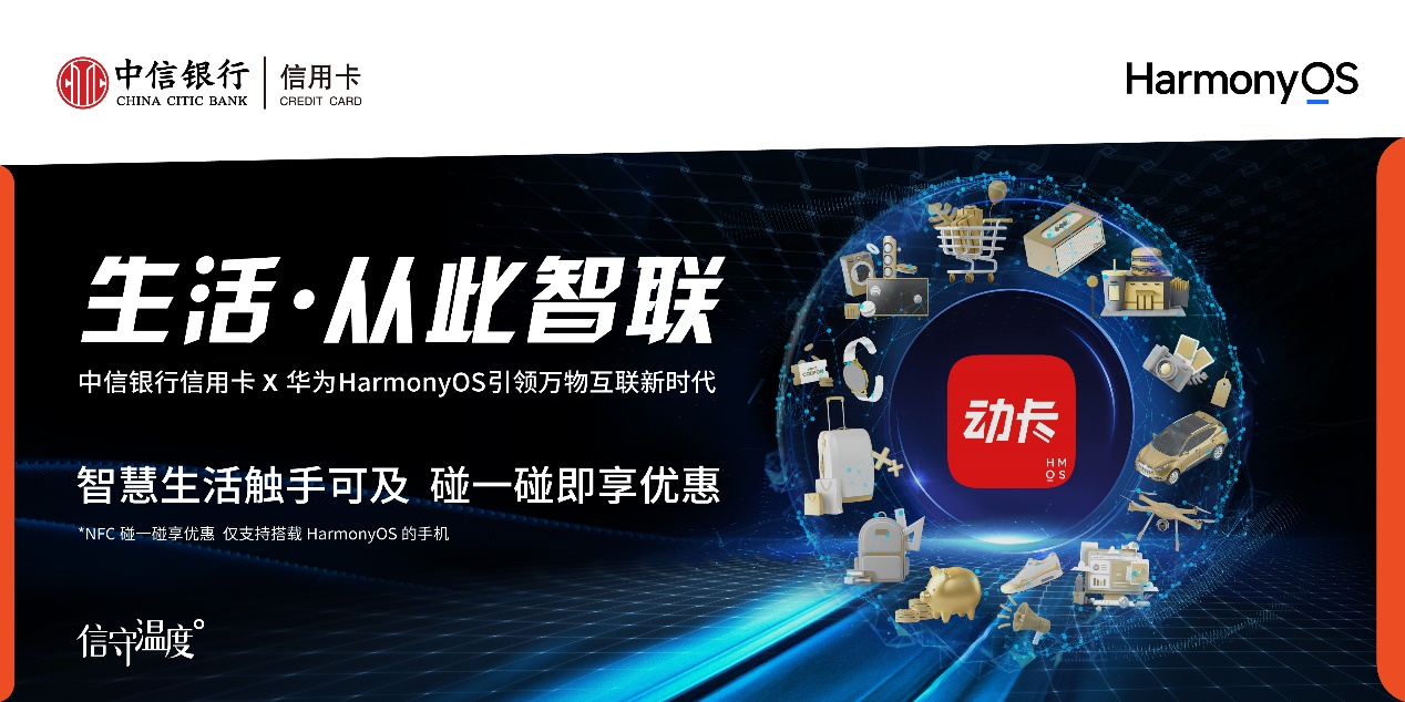 据介绍,根据HarmonyOS的分布式开发特征、万物互联的生态建设目标,中信银行信用卡中心发挥金融服务优势,打造场景化的服务体验,通过HarmonyOS设备“碰一碰”NFC应用,实现商户端极简买券、买单,并实现HarmonyOS设备多端互联与支付。具体而言,本次中信银行信用卡同期上线的HarmonyOS信用卡服务应用涵盖了本地生活、消费支付、卡片申请等日常高频的金融生活场景,主要包括四项创新应用: