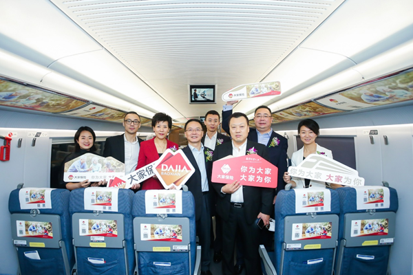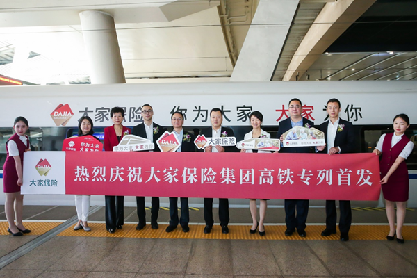 6月10日,大家保险高铁冠名列车首发仪式在北京南站举行。大家保险集团董事长何肖锋、副总经理李欣,华铁传媒集团董事长路立明、常务副总裁高文梅等出席仪式,双方共同为专列剪彩揭幕,见证“大家保险号”高铁发车。