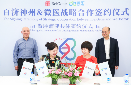 7月21日,医疗服务平台微医与创新药知名药企百济神州签署“肿瘤病种健康共同体”(简称肿瘤健共体)战略合作协议,双方将通过整合优势资源,探索新型合作模式,共同推动以患者为中心的数字肿瘤健共体建设,逐医保统筹区为肿瘤患者提供从预防到诊疗、康复、随访和支付的全流程、一站式服务,推动区域肿瘤防治一体化。