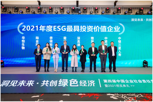中银三星人寿凭借在ESG领域的持续耕耘和突出表现,荣获“2021年度ESG最具投资价值企业”。