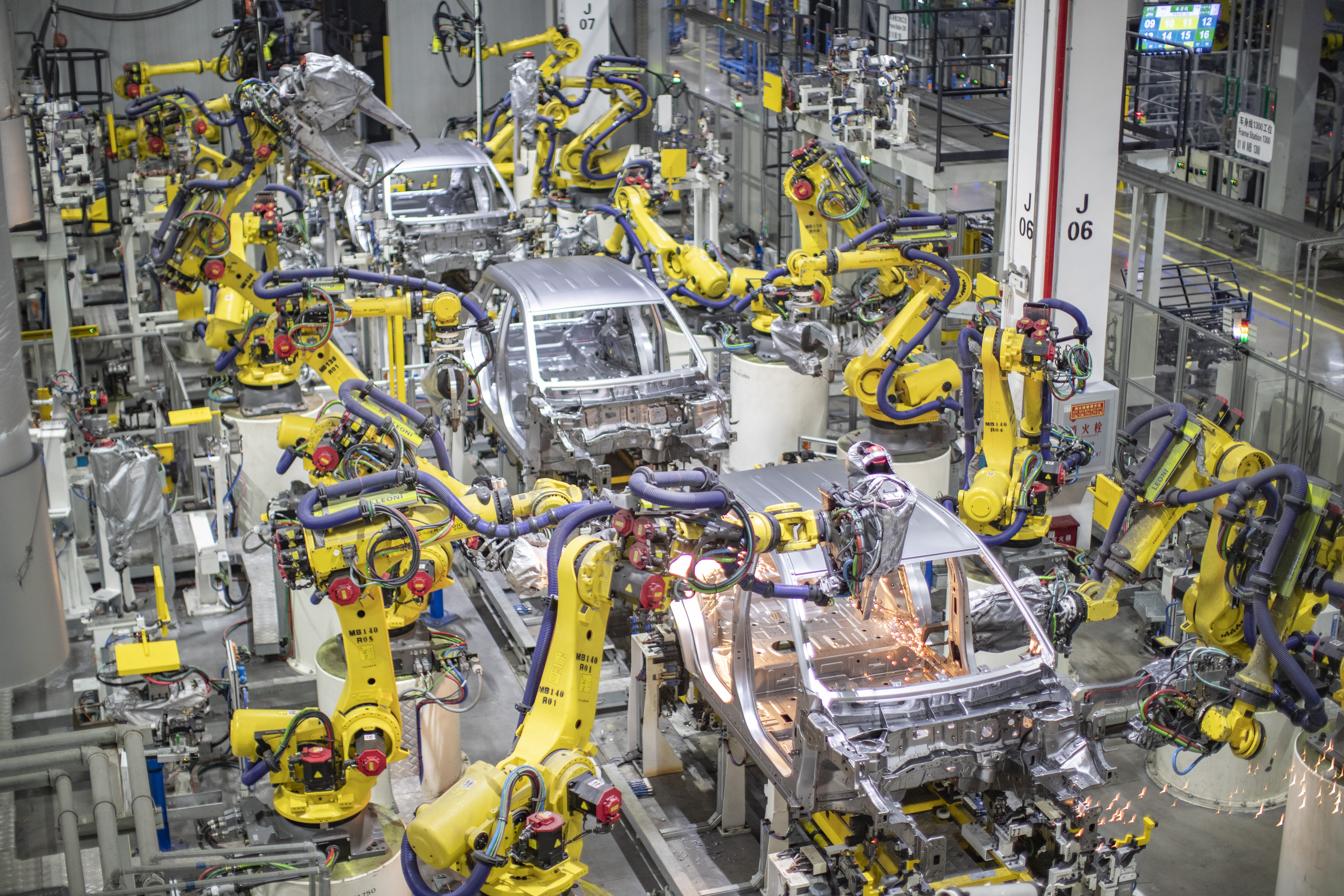 图为重庆一家新能源汽车企业使用智能化焊接机器人进行焊接作业。新华社记者 黄伟 摄