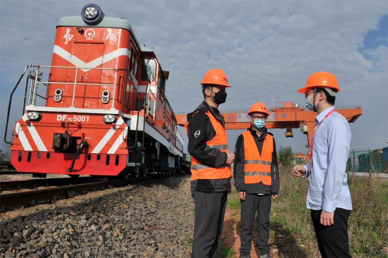 人保财险工作人员深入义新欧班列现场开展服务。图为现场讨论班列运行、运载和安全等情况。