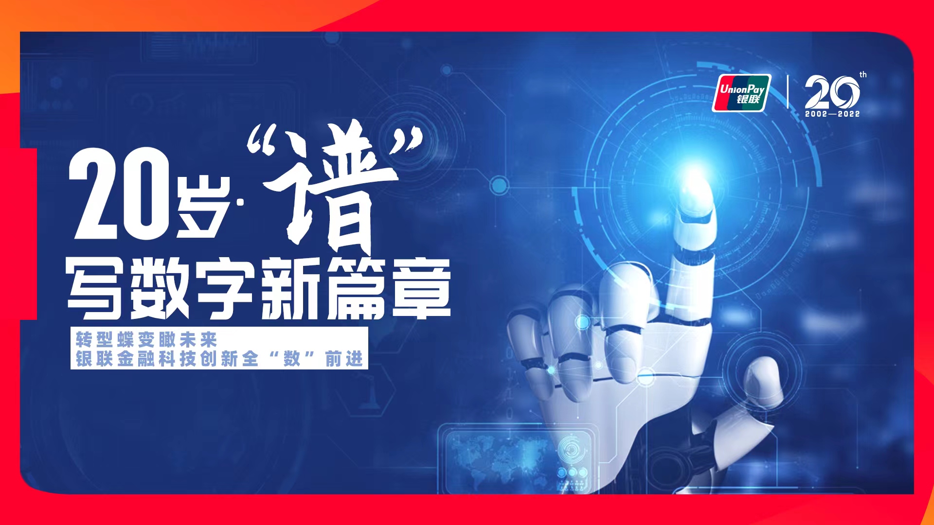 20年科技驱动,银联致力于移动化、智能化、场景化的探索,助推产业业态跃迁,秉承“联接创造价值”的愿景再出发,携手产业各方共赴数字发展“新赛道”。