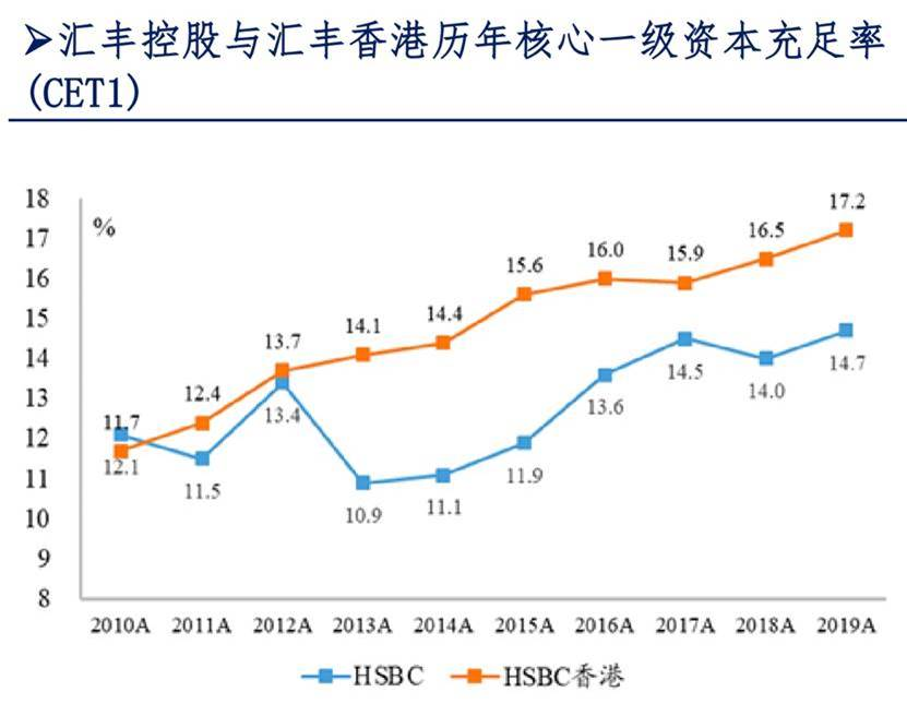 自身亚洲业务与英国监管就是很好的例子。汇丰亚洲业务贡献出大部分利润。其中,亚洲区零售银行和财富管理业务除税前利润自2015年起超过90%由中国香港地区贡献。同时,汇丰在香港的核心一级资本充足率远超集团平均水平。