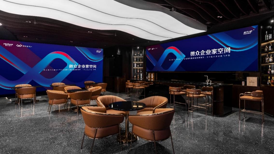 微众企业家空间从企业家商旅出行候机的需求出发,在空间设计上以互动多媒体与多功能性为特点,以强科技与轻复古的碰撞为设计理念,打造出专属于企业家的机场贵宾厅,为其提供细致、贴心的全程接待服务,满足企业家在商旅途中的放松休憩需求。在微众企业家空间,企业家可畅享健康轻食,或在“微醺吧台”小酌一杯,让企业家自信从容开启新的商机之旅。