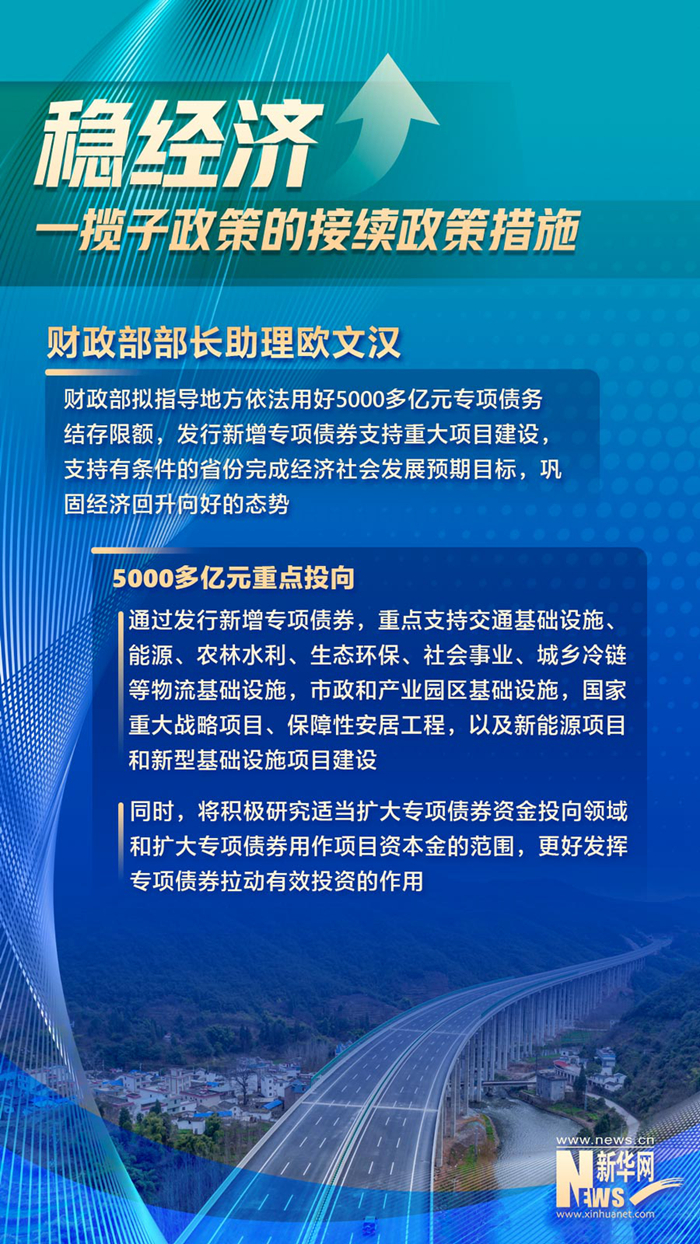 在依法用好5000多亿元专项债地方结存限额方面,欧文汉表示,财政部拟指导地方依法用好结存限额,发行新增专项债券支持重大项目建设,支持有条件的省份完成经济社会发展预期目标,巩固经济回升向好的态势。