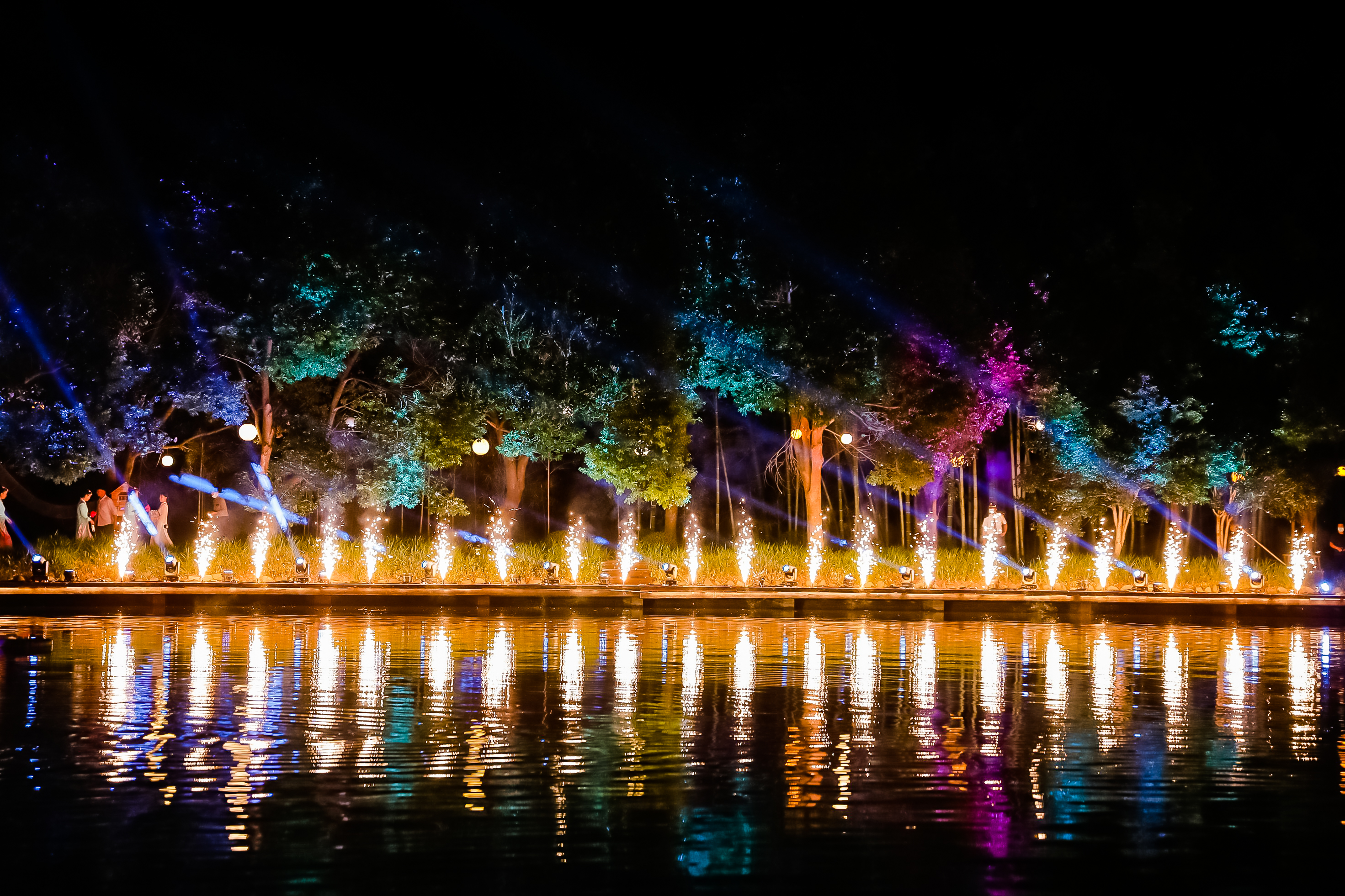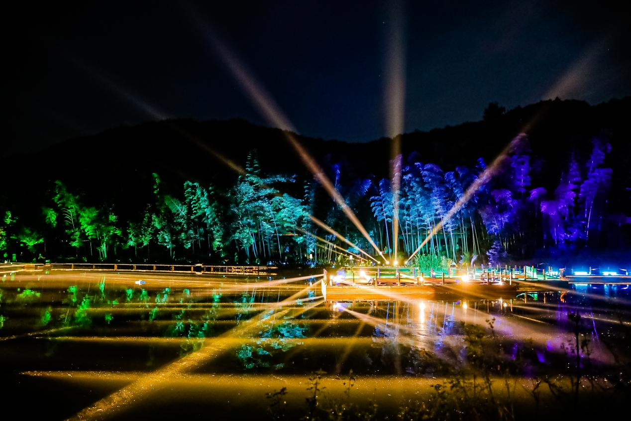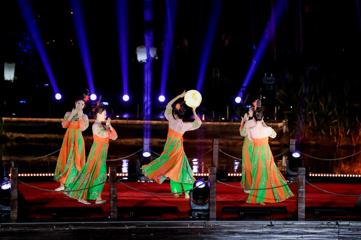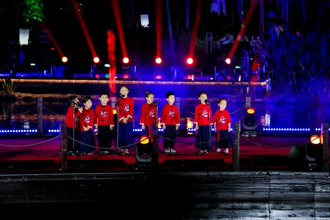 音乐晚会以《径山茶香,泮池月缘》为主题,以“宋韵、团圆”为元素,通过声、光、舞等方式,灵动地展示着径山宋韵文化的独特魅力和蓬勃生命力,传递中秋这一传统佳节中所蕴含的乡愁思念、文化传承与家国情怀。竹林、泮池、茶园等别具一格自然生态环境,通过科技的加持,营造出一幅月落平湖、秋水长天的江南秋画。