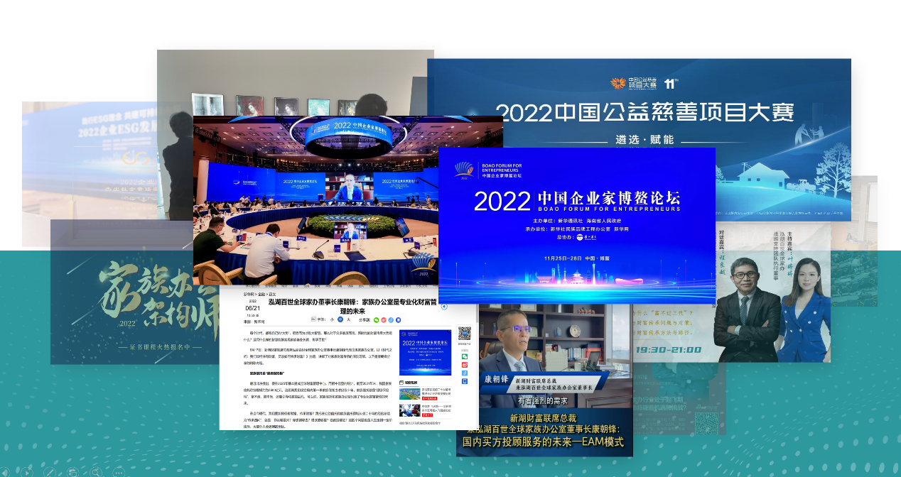 年内,泓湖百世全球家办还参加了2022中国公益慈善项目大赛,2022中国企业家博鳌论坛等重磅活动,接受媒体的邀请,参与到了财富管理基础素质提升的投资者教育视频录制活动之中。