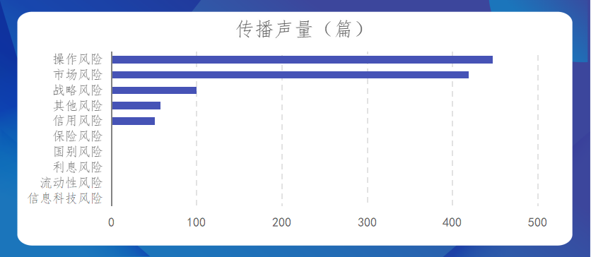 风险类型说明:依据银保监会2021年2月18日发布的《银行保险机构声誉风险管理办法(试行)》中对银行保险机构应注意的十大类声誉风险进行归类,分别是操作风险、市场风险、信息科技风险、流动性风险、信用风险、战略风险、保险风险、国别风险、利息风险、其他风险。