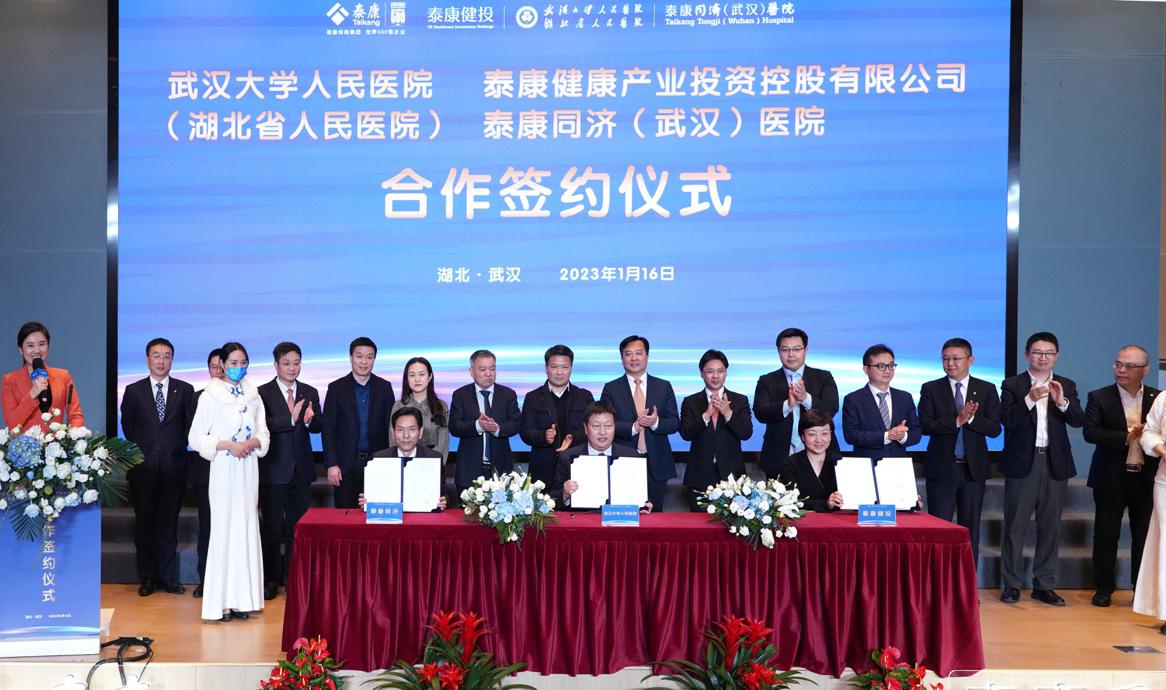 1月16日,泰康健康产业投资控股有限公司、武汉大学人民医院(湖北省人民医院)、泰康同济(武汉)医院签订合作协议,三方将进行全面医疗技术合作,以适应新时代医疗卫生事业发展需要,更好地满足人民群众日益增长的医疗保健与健康生活需求。
