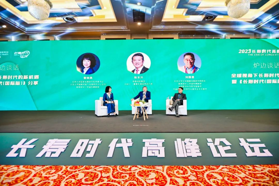 在《长寿时代(国际版)》发布后,由雷晓燕主持“炉边谈话”,与陈东升、刘国恩围绕“全球视角下长寿时代的新机遇”展开对谈。
