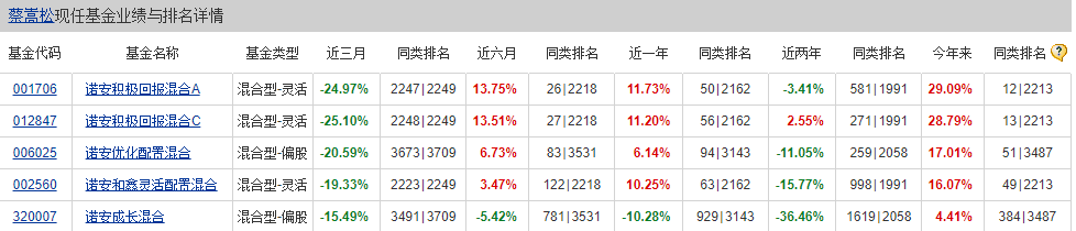 蔡嵩松管理过基金产品(数据来源:天天基金网)