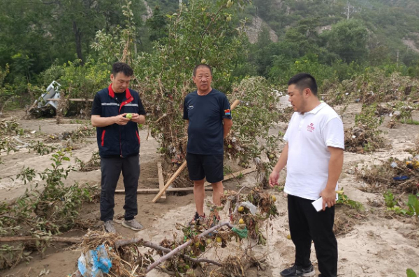 自门头沟区各乡镇交通逐步恢复正常,8月5日起中华财险北京分公司的农险查勘员每天翻山越岭,迎着晨光、踏着泥泞艰难步行在门头沟区各乡镇的山路上,只为早日将赔款送到保户手中。枝叶总关情,暴雨发生后乡亲们枝头的果子、地里庄稼的受损情况,时刻牵动着农险工作者的心。
