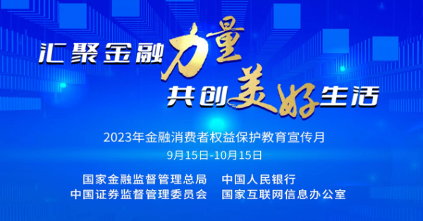 为全面落实党的二十大精神,坚持“以人民为中心”的发展思想,切实提升消费者金融素养,有效防范化解金融风险,营造和谐健康金融环境,国家金融监督管理总局、中国人民银行、中国证监会、国家互联网信息办公室联合组织全国金融业开展2023年“金融消费者权益保护教育宣传月”活动。