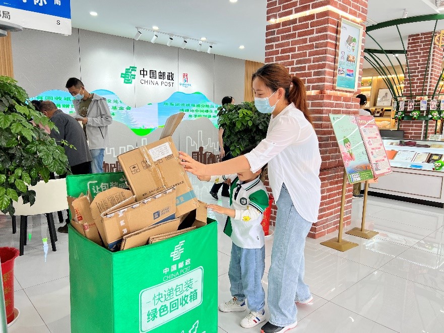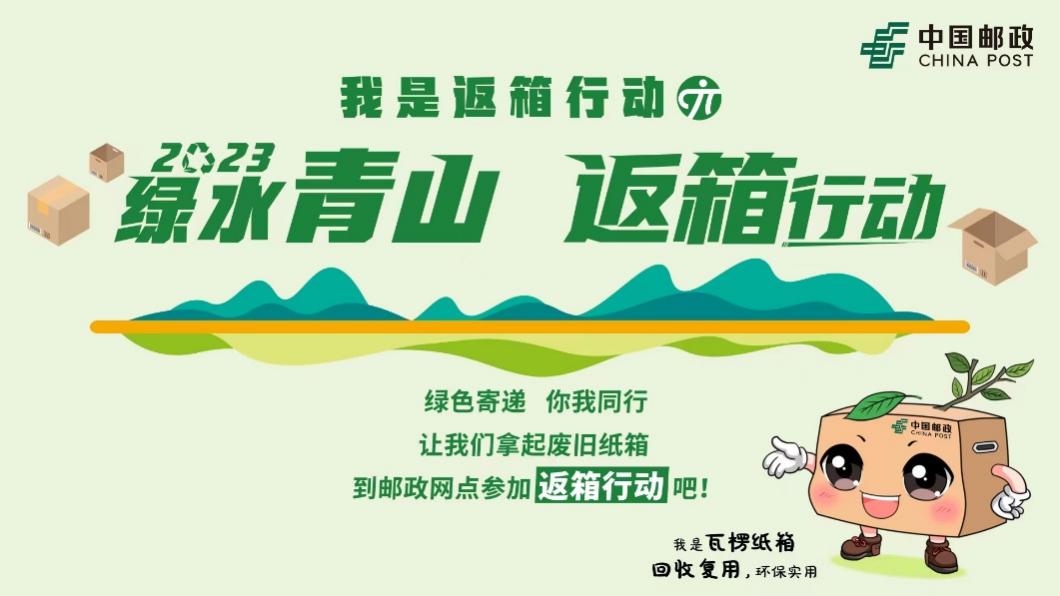 为了倡导文明健康绿色环保的生活方式,中国邮政全力推动行业绿色发展“9218”工程,通过大力开展中国邮政“2023绿水青山 返箱行动——我是返箱行动π”主题系列活动,向广大市民宣传绿色邮政发展理念,积极营造崇尚绿色、全民参与氛围,让“邮政绿”的底色更加亮丽夺目。