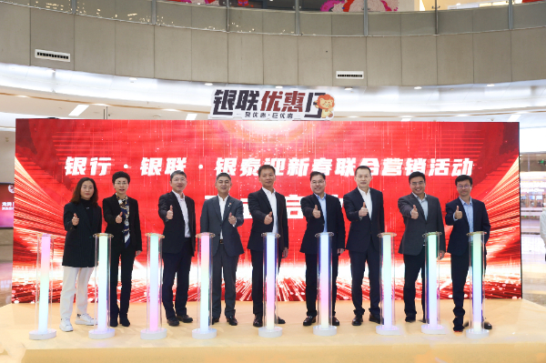 1月19日,中国银联携手各商业银行、银泰百货于宁波开启“银行·银联·银泰”迎新春活动,并正式推出新的数字化促销工具“多券叠加”。宁波市商务局,中国工商银行、中国银行、招商银行、民生银行、广发银行、宁波银行等商业银行,银泰集团、品牌商户以及中国银联的相关领导共同出席活动。