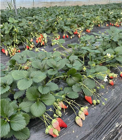 下湾村智慧大棚中种植的草莓。新华网 闫惠卓摄
