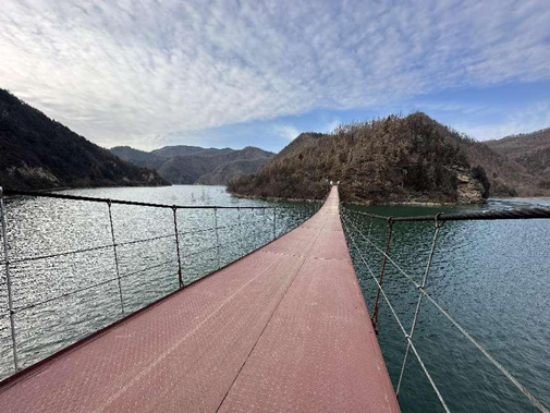 中国邮政为商州市二龙山水库捐建的钢索桥。新华网 闫惠卓摄