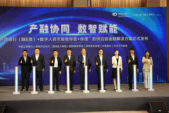 为深入贯彻落实中央金融工作会议“数字金融”工作部署,为经济实现包容性增长注入动力,为经济高质量发展提供保障,4月23日,在中国工商银行数字货币办公室与网络金融部平台金融发展中心支持下,工商银行河北雄安分行联合国网河北电力、国网英大集团、国网雄安新区供电公司、国网河北物资公司和雄安保理等产业单位,在雄安新区发布了国内首个服务央企产业链的“开放银行(融E聚)+数字人民币智能存管+保理”的供应链金融解决方案。