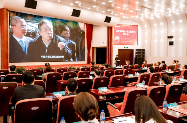 参会人员观看饶才富先进事迹介绍片