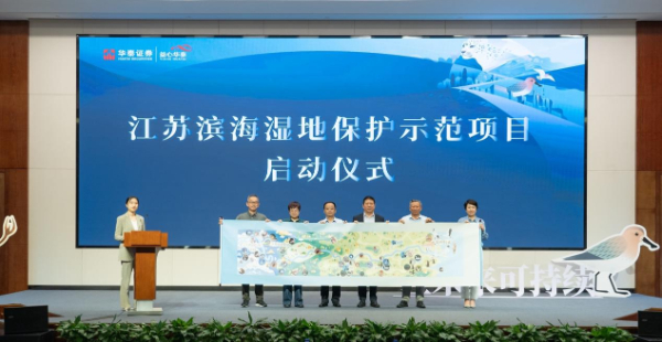 6月,江苏盐城条子泥湿地上,大量国家一级保护动物黑嘴鸥的雏鸟们破壳而出,蹒跚学步、唧唧索食。这里是诸多国际候鸟迁飞路线的中心地带、全球最重要的滨海湿地之一,也是“一个长江”项目的新一站。活动现场,江苏省生态环境厅、上海证券交易所公益基金会与来自保护机构的专家在绘有长江流域的画卷上,贴上勺嘴鹬等条子泥湿地的代表物种,与华泰证券共同见证江苏滨海湿地保护示范项目的启动。华泰证券通过华泰公益基金会与红树林基金会(MCF)共同推进在盐城条子泥湿地的保护行动,包括滨海湿地修复、迁徙水鸟保护、自然教育等工作。