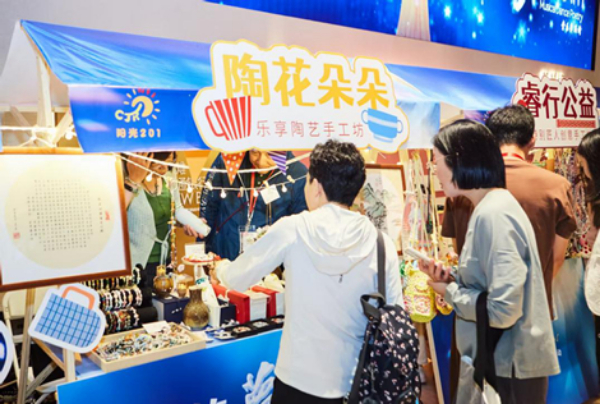 公益市集上,包括残疾人手作坊、暖心茶饮咖啡坊、“特殊双手”烘培坊、盲人按摩体验区等引得观众纷纷驻足体验。盲人按摩体验区、黑暗中对话工作坊吸引众多市民参与,亲身体验残障群体的日常。
