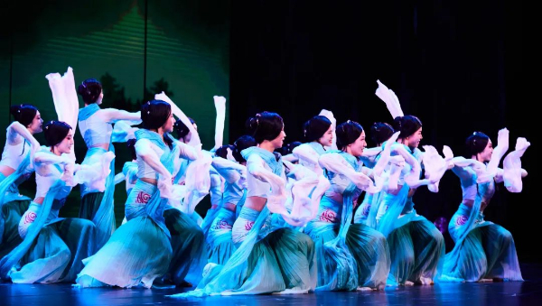 当晚,剧场内灯光渐暗,演员们以手为眸,化静为动,将传统文化的深邃与残疾人艺术的创造力完美结合。从民族风情到西洋韵律,从芭蕾的优雅到现代舞的前卫,演员带来一场极具创新性与深度的艺术体验,让观众在感动中体悟“艺术无障碍”的真谛。芭蕾手语诗《我的梦》以优雅姿态诉说艺术梦想;敦煌舞蹈《相印》重现千年敦煌的神秘与壮美;舞蹈《纸扇书生》尽显文人的潇洒意趣;萨克斯独奏《你鼓舞了我》以激昂旋律传递力量;合唱《我和我的祖国》用歌声抒发对祖国的深情……上海残疾人艺术团献上原创歌曲《奉献》与舞蹈《晨光曲》,以细腻表演传递城市温度。舞蹈《千手观音》作为压轴之作,再现了享誉全球的艺术瑰宝,赢得全场掌声。
