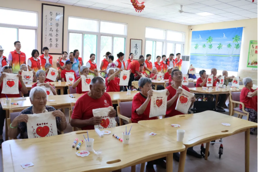 在山东,泰康人寿山东分公司的志愿者与章丘区日月潭养老中心的老人一起为爱国爱党主题帆布包涂色,用画笔勾勒爱国情怀,用色彩共绘盛世华章。同时,志愿者为养老机构的长辈们送上生活物资,并与老人亲切交谈,细致询问他们身体状况和日常生活需求。贴心的问候、温暖的关怀让老人们脸上洋溢笑容。
