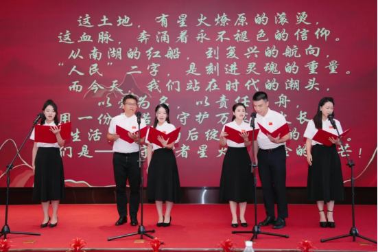 在深圳,泰康人寿深圳分公司积极参与当地保协举办“七一”党建诗歌朗诵比赛,选拔了6名骨干党员组成朗诵团队,以原创诗歌《守护者星火》为载体,将保险行业服务国家战略、保护消费者权益、守护人民美好的责任担当融入艺术表达,引发广泛共鸣。