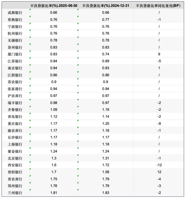 城(农)商行方面,资产质量整体表现较好,不良率大部分维持低位。其中,成都银行不良贷款率仅为0.66%,是A股上市银行中不良率最低的银行,同时该行拨备覆盖率达452.65%,风险抵御能力较强劲。