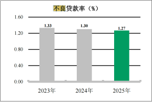 年报数据显示,截至2025年末,该行不良贷款率降至1.27%,连续五年实现下降;逾期贷款率1.25%,保持可比同业较优水平,逾期贷款率低于不良贷款率,资产质量认定标准严格;贷款拨备余额保持万亿元以上,拨备覆盖率292.55%,风险抵补能力较强。