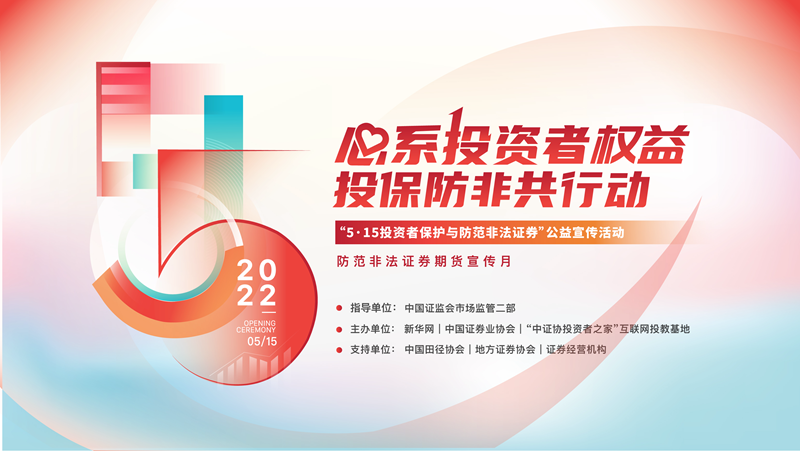 5月15日,在证监会市场监管二部指导下,新华网联合证券业协会、“中证协投资者之家”互联网投教基地共同举办“5·15投资者保护与防范非法证券”宣传公益活动。