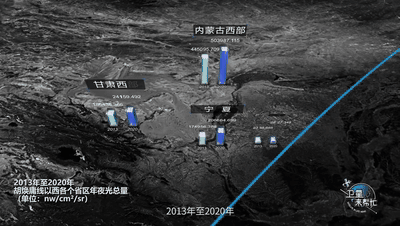 从沙漠里亮起的点点夜光到扩散开来的团状夜光,我们以卫星夜光为线索,探寻着“胡焕庸线”以西区域的新变化。