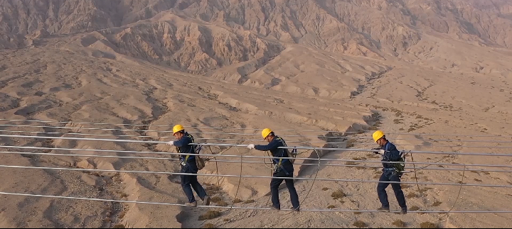 “我的工作是对戈壁滩上的铁塔和导线进行检查。一基铁塔大概有3000多个螺丝,每基铁塔需要抽检约200颗螺丝。”每天,新疆送变电有限公司南疆喀什运检分公司胡杨巡检班巡检工人阿卜杜艾尼·艾力都要爬上铁塔,走在百米高空的导线上,和同事们一起对线路进行“体检”,确保线路零缺陷投运。