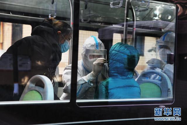 ▲1月7日,医护人员在“核酸采样流动车”内为市民进行核酸采样。图片来源:新华网