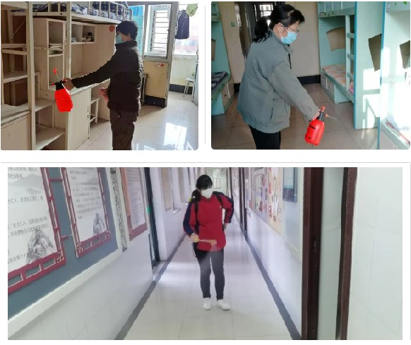 ▲石家庄外国语学校对教学区和生活区进行消杀。图片来源:石家庄外国语教育集团
