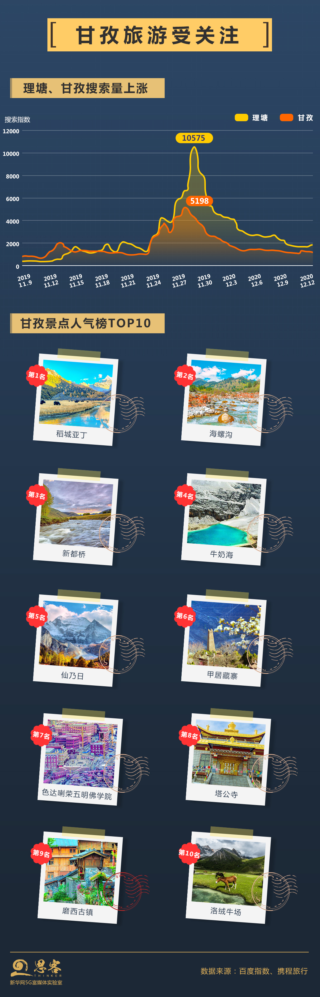 携程数据显示,“理塘”热度从11月20日起大涨,到11月最后一周搜索量猛增620%,“丁真的世界”甘孜旅游团网上订单增长66%。越来越多人认识了这座位于成都—康定—理塘—亚丁—香格里拉旅游大环线上的中心城市。