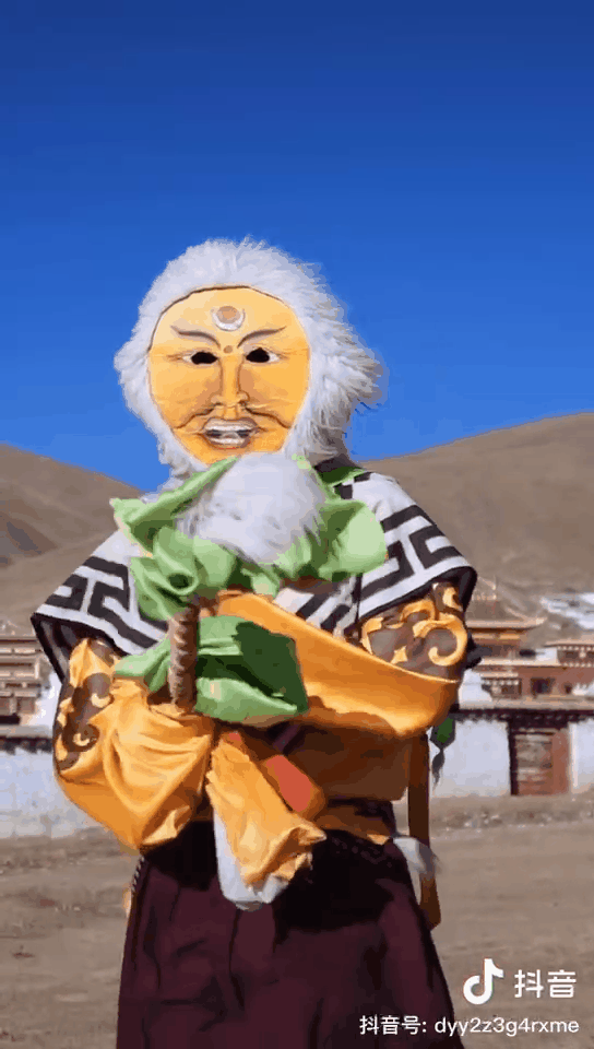 ▲丁真展示传统藏戏。图片来源:抖音用户@理塘丁真