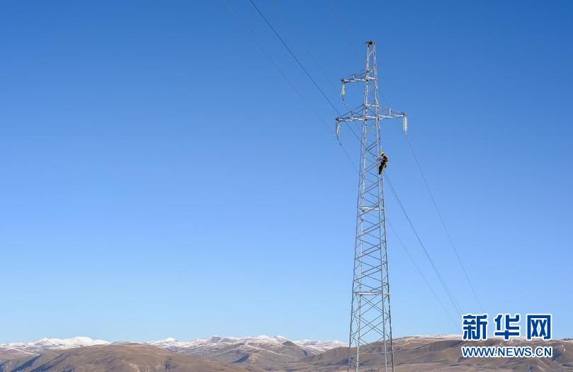 ▲2019年10月18日,工人在通向理塘县克日泽洼村的输电线路施工现场工作。新华社发(唐文豪 摄)