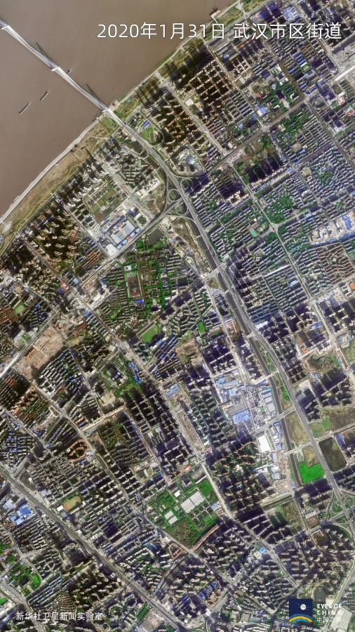 这是卫星拍摄的2020年1月31日武汉市部分街道景象,因疫情防控所需,路上鲜见车辆与行人。