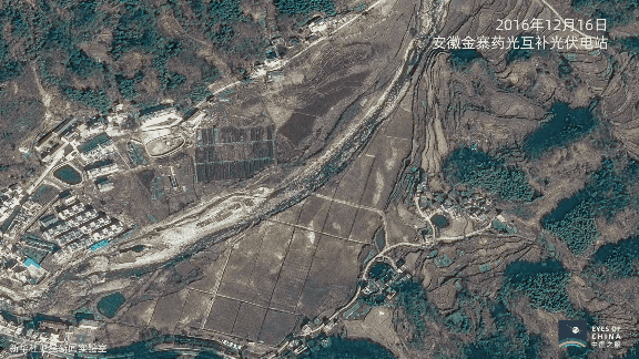 卫星捕捉到了这一变化,在安徽省六安市金寨县,山边坡顶架起了光伏板,自2014年起共助力该县10余万人脱贫。这是中国脱贫攻坚战的缩影,历经8年,现行标准下近1亿农村贫困人口在2020年实现全部脱贫。