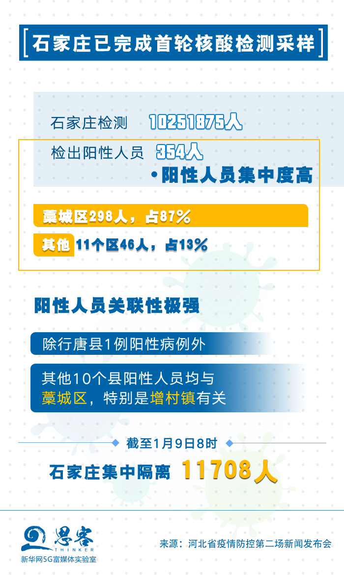 其中,石家庄市1025万人完成核酸检测,累计检出阳性人员354人。这次检测发现两个特点: