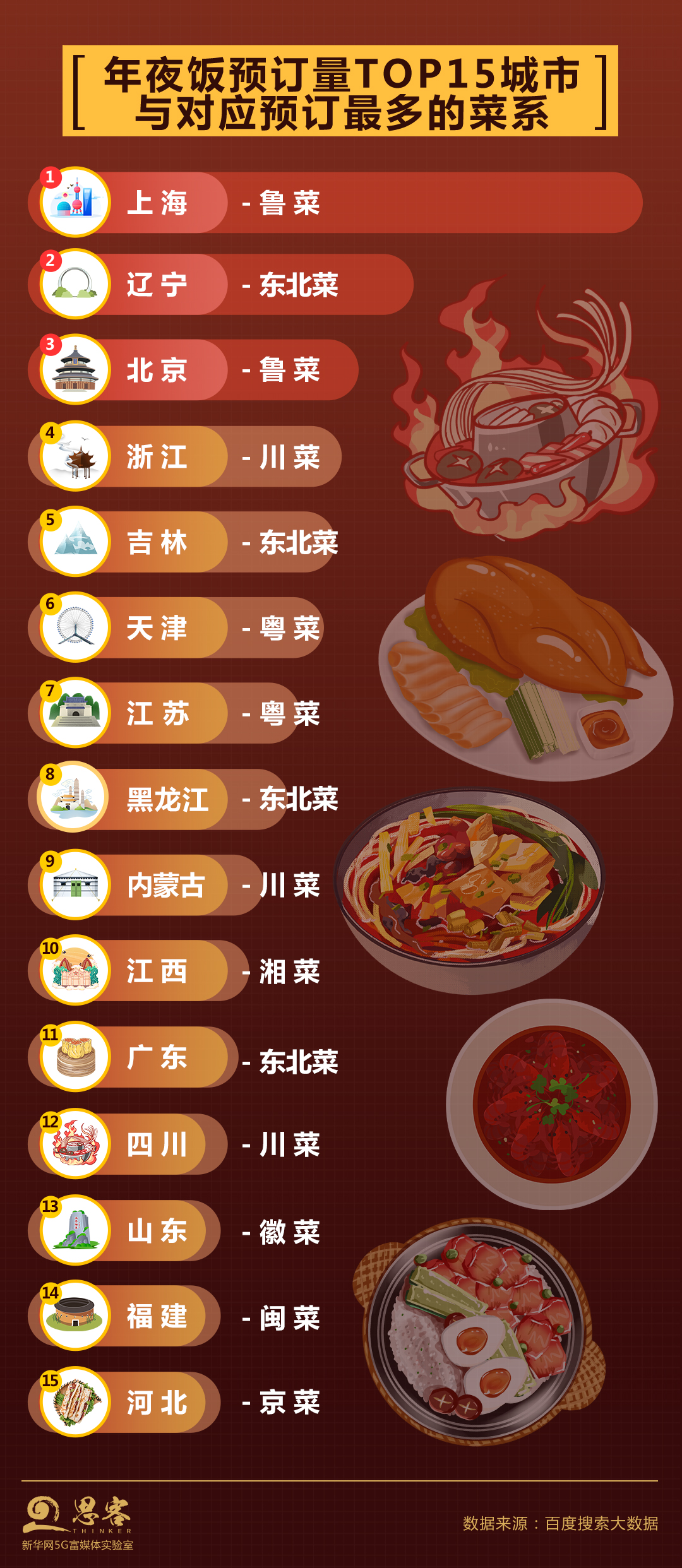 单人份年夜饭“受宠”。说到过年,少不了一餐充满仪式感的年夜饭。数据显示,北京、上海、浙江等劳务输入大省年夜饭预订量排名靠前,说明不少城市上班族调整了春节返乡计划,独自一人或是以小家庭为单位留在工作地过年。因此相比去年8-12人居多的年夜饭预订类型,今年4人份、2人份甚至单人份的年夜饭预订量较多。即使一个人过年,也要吃点好的!