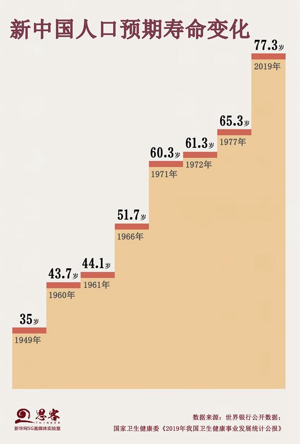 我国人口预期寿命不断提高,这与广大基层医务工作者的努力分不开。从1949年的35岁到2019年的77.3岁,中国的人均预期寿命翻了一倍,丈量出人民生活从贫瘠到富足,从缺医少药到病有可医的发展足迹。