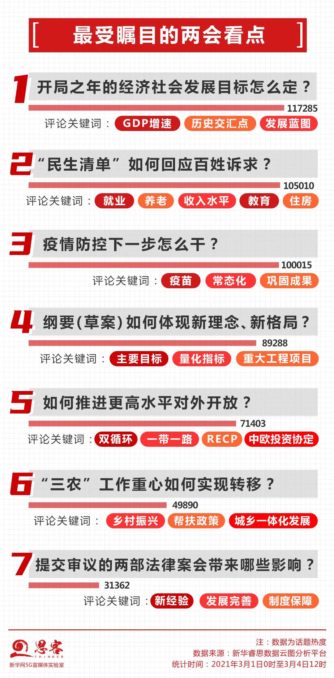 民之所望,政之所向,社情民意“小目标”凝聚百姓新期待。从就业增收到住房医疗,从基础教育到养老保障,民生话题一直都是两会的热点。我国经济总量突破100万亿元大关;脱贫攻坚战取得全面胜利;基本医疗保险覆盖超过13亿人……2020年的一串串数字兑现成百姓的“幸福对账单”。今年的两会“民生清单”将如何凝聚民意回声受到网民关注。